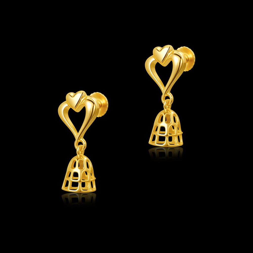 Add a romantic charm to your look with these 92.5 sterling silver earrings, finished with a radiant gold polish. The earrings feature an elegant double-heart motif that gracefully flows into a lightweight openwork jhumka design. Perfect for women who love a blend of love-inspired designs and traditional artistry, these earrings are ideal for festive occasions, parties, and everyday wear.