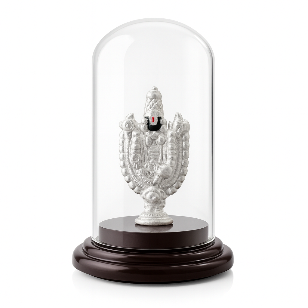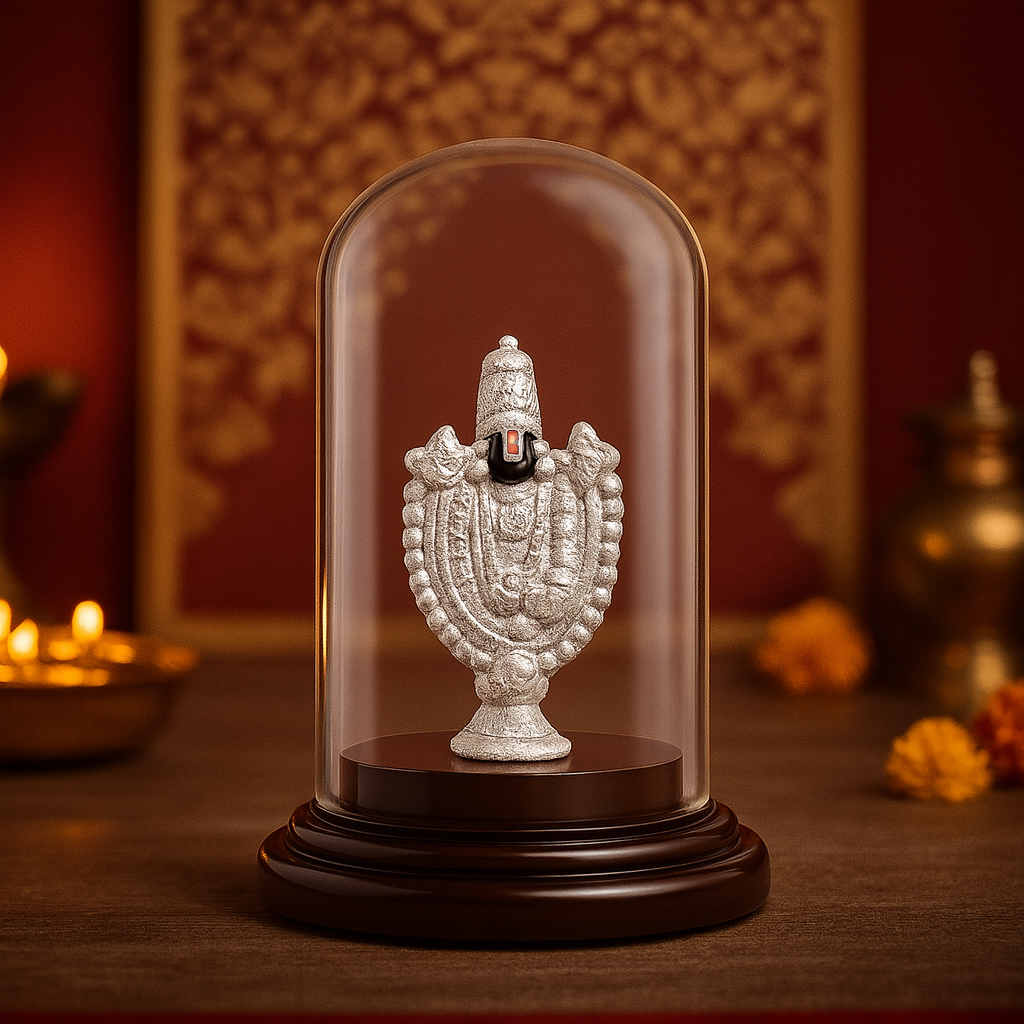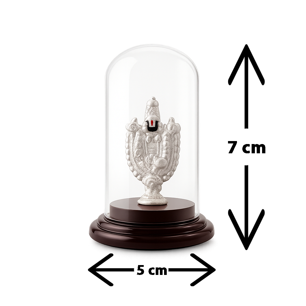 Invoke divine blessings with this exquisitely crafted 99.9% pure silver Balaji idol, elegantly encased in a transparent glass dome with a polished Plastic base. The idol depicts Lord Venkateswara in fine detailing, symbolizing faith, prosperity, and protection. Compact and elegant, it is ideal for pooja rooms, offices, car dashboards, or as a thoughtful spiritual gift for auspicious occasions like weddings, housewarmings, and festivals.