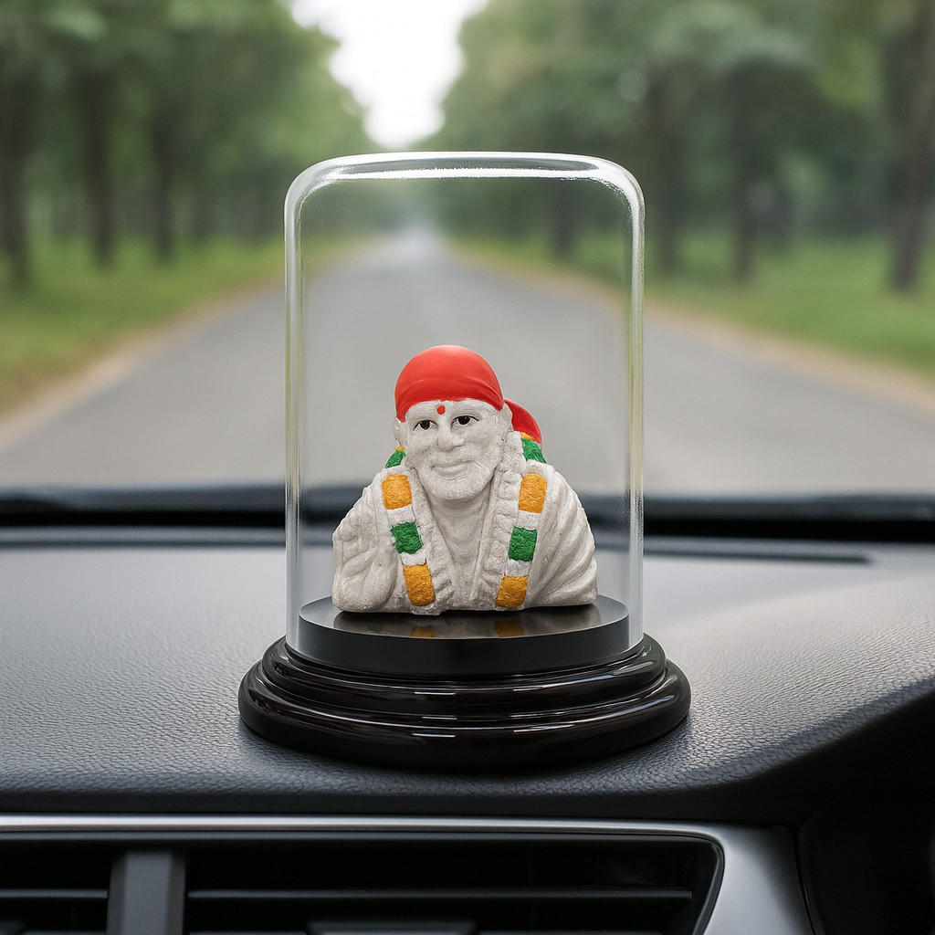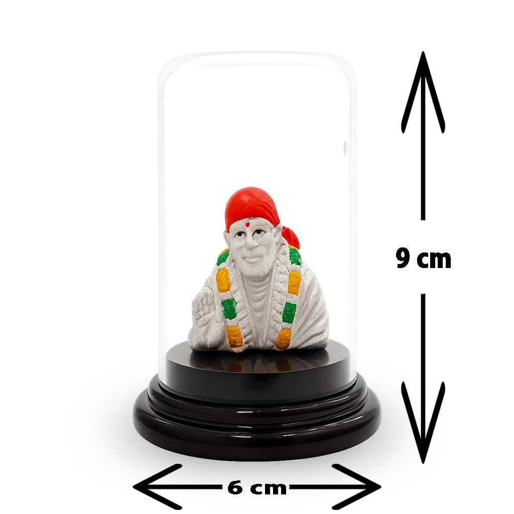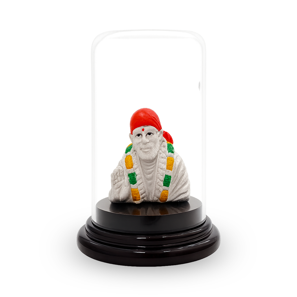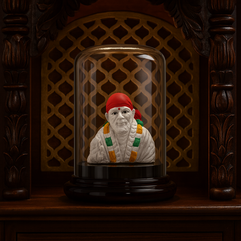 Seek blessings of peace, protection, and devotion with this exquisitely crafted 99.9% pure silver Sai Baba idol. The idol is beautifully designed with traditional detailing and vibrant accents, symbolizing faith, guidance, and divine grace. Enclosed in a clear glass dome with a polished wooden base, it remains protected and radiant for years. Perfect for pooja rooms, workspaces, or as a spiritual gift for auspicious occasions like housewarmings, weddings, and festivals.