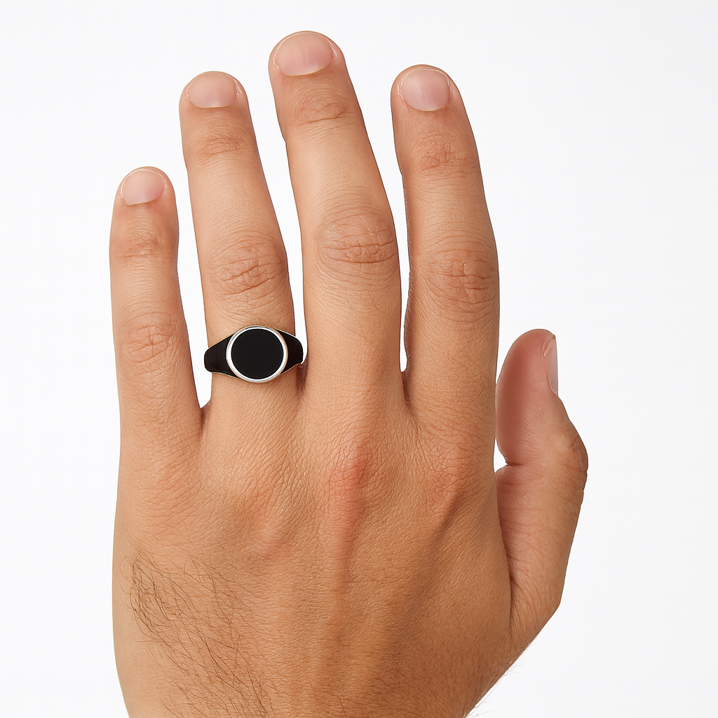 This elegant 92.5 sterling silver men’s ring features a smooth round black onyx, set in a polished bezel with minimalist Turkish-inspired detailing. The sleek black and silver contrast creates a refined, masculine look suitable for both daily wear and special occasions. Black onyx, known for its protective and grounding qualities, adds strength and meaning to the design. A timeless piece for men who appreciate heritage craftsmanship with modern simplicity.