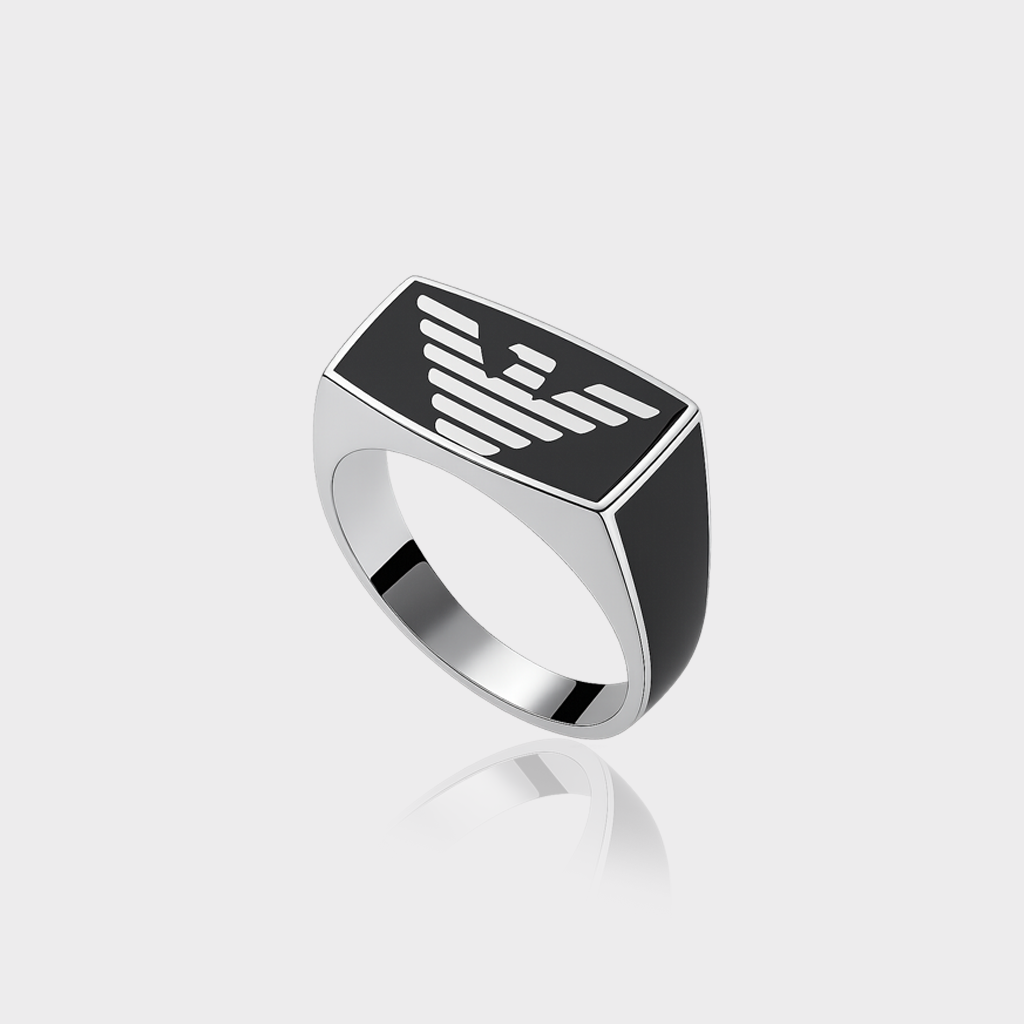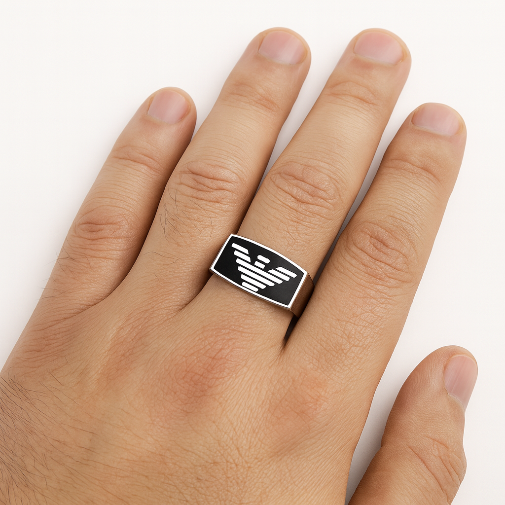 This bold 92.5 sterling silver men’s ring features a striking eagle emblem set against a sleek black background, inspired by Turkish craftsmanship. The eagle, a symbol of power, freedom, and vision, makes this ring a statement of strength and confidence. Crafted with premium sterling silver and polished to perfection, it blends heritage design with modern masculinity, making it an ideal accessory for men who embrace bold style and timeless elegance.
